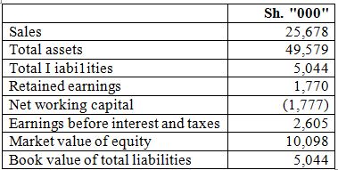 The company is currently paying interest on a long term debt instrument amounting to Sh.905,000 per year and that the company’s total liabilities is constituted in the ratio of 2:5 between current and non-current components.