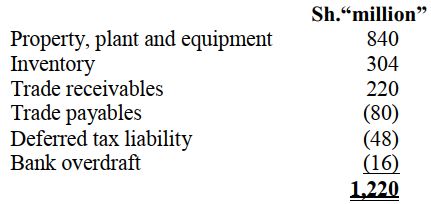 1. On 1 July 2012, P Limited acquired 60% of the ordinary shares of S Limited for a cash consideration of Sh.10,000 million. At acquisition, the fair value of the non-controlling interest in S Limited was Sh.6,500 million. P Limited wishes to use the fair value method of accounting for goodwill. On 1 July 2012, the fair value of the identifiable net assets in S Limited was Sh.14,000 million and the retained earnings of S Limited were Sh.1,200 million. The excess in fair value was due to non-depreciable land.