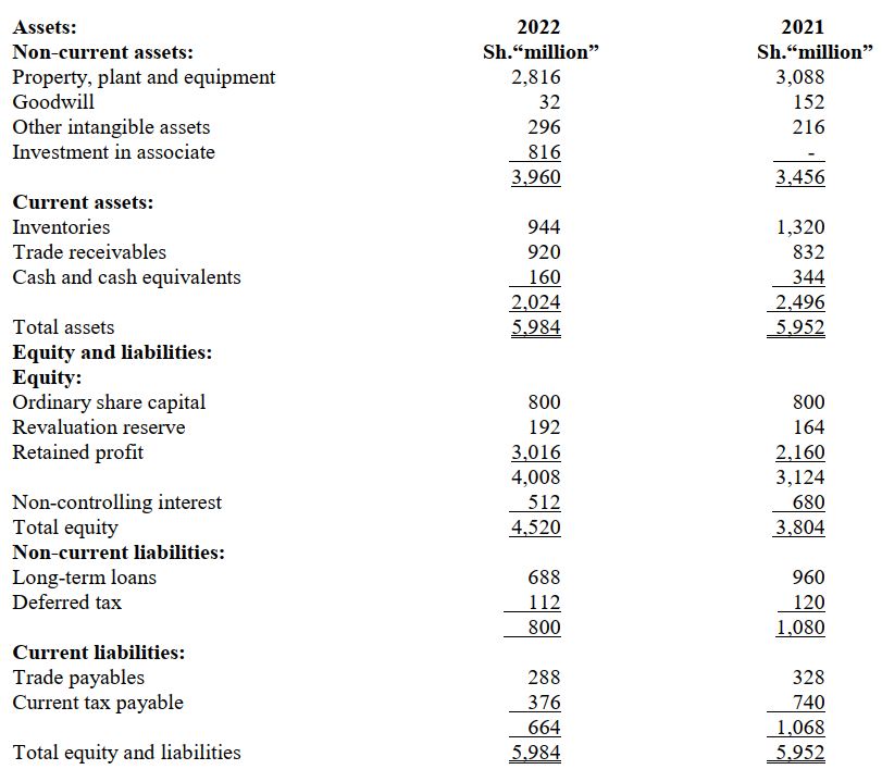 2. On 1 January 2022, P Limited acquired a further 20% interest in S Limited for a cash consideration of Sh.3,000 million. S Limited reported a profit for the year ended 30 June 2022 of Sh.500 million which accrued evenly throughout the year.