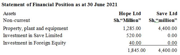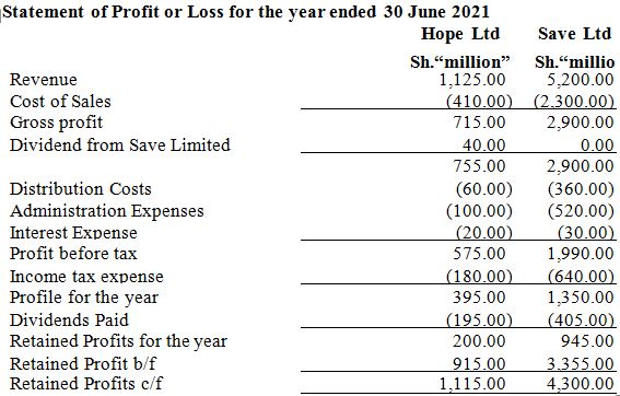 3. During the year ended 30 June 2021, Help Limited sold goods worth Sh.100 million to Save Limited, reporting a gross profit margin of 30%. 50% of the goods remain unsold the end of the year.