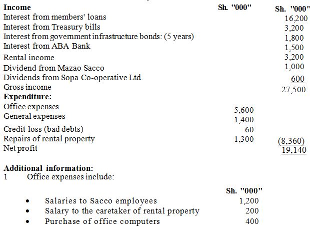 (a) The following information relates to Msanii Sacco Ltd. for the year ended 31 December 2020: