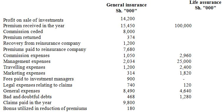 2. General expenses under general insurance include cost of computers Sh. 800,000 and cost of saloon car Sh.3,260,000.