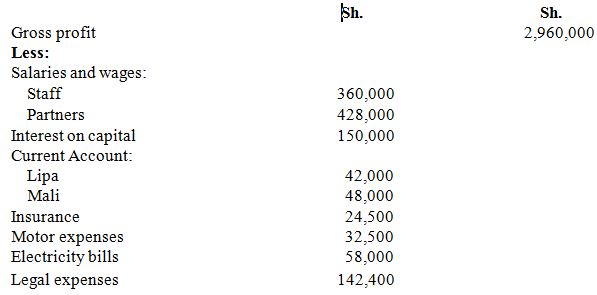 (b) Lipa and Mali are in partnership trading as Lima Enterprises where they share profits and losses in the ratio of 2:1 respectively.