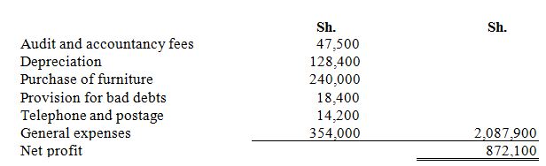 4. General expenses included cost of computers of Sh.90,000 and computer software of Sh.45,000.