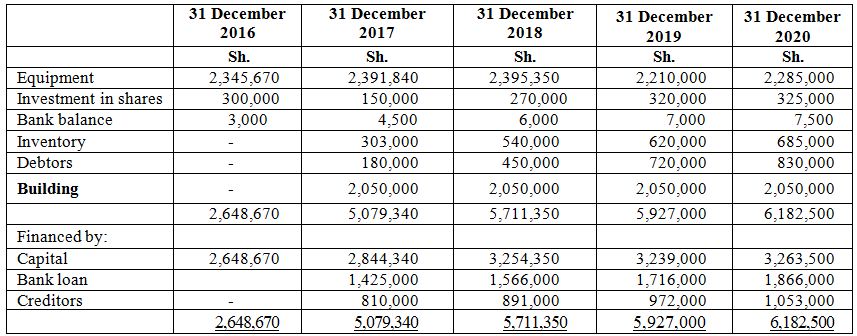 • The company owns the building which houses its offices. Part of the office space is rented out to other tenants. In the year to 31 December 2020, the company received Sh.2,800,000 net rental income from their estate agents. Property management fees amounting to Sh.3,200,000 for the year to 31 December 2020 had not been deducted.