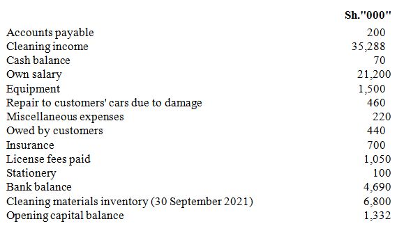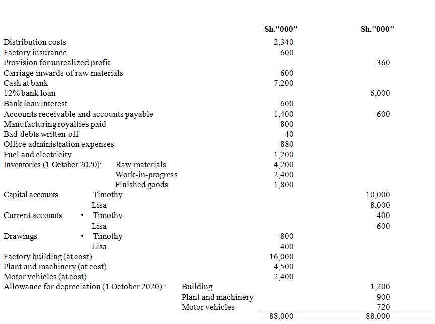 The following trial balance was extracted from their books for the year ended 30 September 2021: