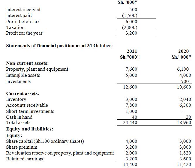 (b) The following are the summarised financial statements of Eneza Limited as at 31 October 2020 and 31 October 2021: