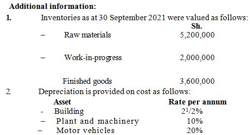 (a) Manufacturing and statement of profit or loss for the year ended 30 September 2021. (12 marks)