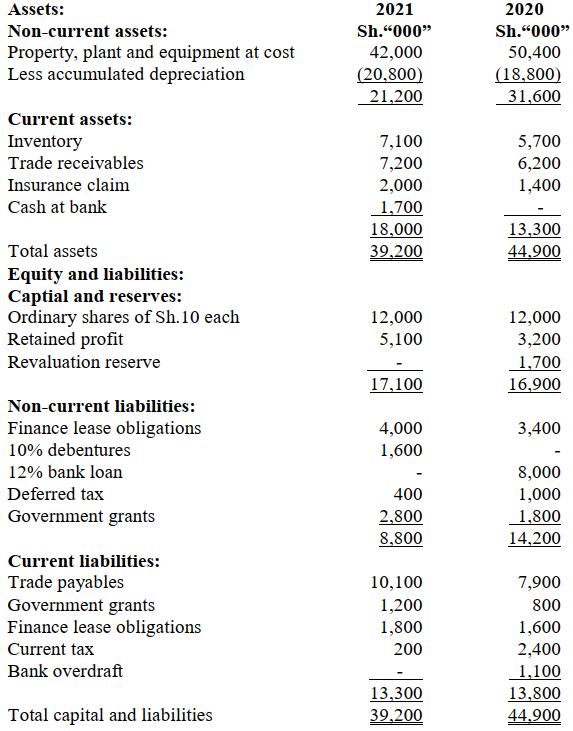 The income statement of Coaster Limited, a company operating in the small and medium enterprises (SME) sector for the year ended 31 December 2021 together with the comparative statements of financial position as at 31 December 2021 and 31 December 2020 are shown below: