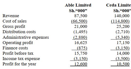4. During the year ended 31 March 2022, Twende Limited sold goods worth Sh.200 million to Kuja Limited. Twende Limited reports a gross profit markup of 25% on all its sales. Kuja Limited still had 25% of these goods in its inventory as at 31 March 2022.