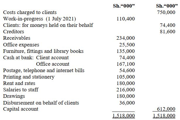 (b) S and M are advocates operating under the name SM Advocates. The firm’s trial balance for the year ended 30 June 2022 is as shown below: